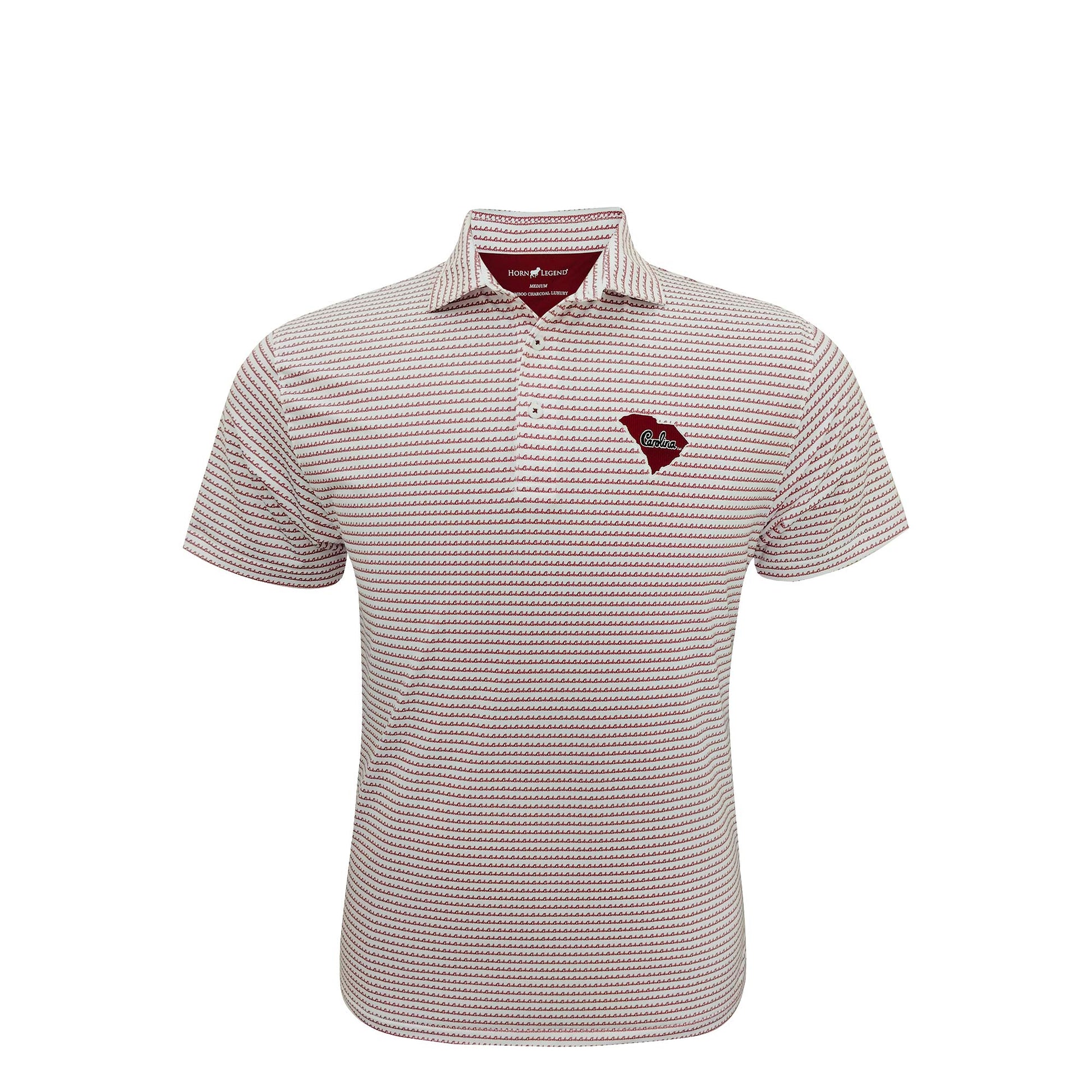 A brand new custom polo!! From a distance this looks like a normal stripe polo until you get close and it is the "Carolina" script logo that forms the stripe! This new polo also features the script logo in the state logo!
